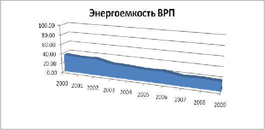 Рисунок 2. Динамика энергоемкости ВРП Калининградской области в 2000-2009 годах, кг у.т. на 1 тыс. руб.