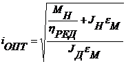 Задача оптимизации передаточного числа редуктора часто сводится к обеспечению максимального ускорения разгона нагрузки, что важно для режима согласования, или к обеспечению минимального движущего момента.
