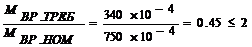 Т.е. видим, что Мтреб меньше, чем Мном, тем самым мы обеспечили запас по ускорению.