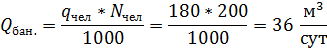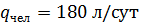 водопотребления на одного человека принимаем