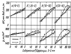 Уменьшение перепада давления на 1 м высоты слоя в результате смешивания фракций разной крупности с фракцией 5-0 мм при ее содержании до 30% достигало 600-700 мм вод. ст. или примерно 60-70%.