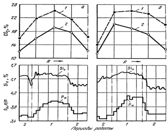 газа в печи. Диаграммы распределения СО2 по радиусу колошника, приведенные на