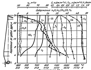 Газ, являющийся теплоносителем, выполняет также функции посредника в массотеплообмене между слоями кокса и агломерата. Количество его изменяется при переходе от слоя к слою, вследствие различного газодинамического сопротивления слоев по высоте и сечению печи, что усугубляет его неравномерность в количестве выполняемой им работы. Теплообмен в слое между кусками однородных материалов при толщине слоев 100-400 мм практически отсутствует (температура поверхности примерно одинакова). Скорость нагрева кусков в определенной степени будет зависеть от их размеров, но при малой скорости опускания шихты (40-120 мм/мин) значительной разницы в температуре поверхности больших и малых кусков не наблюдается.