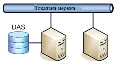 Архітектура системи зберігання DAS (Direct Attached Storage) - безпосереднє підключення до сервера.