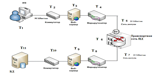 Tзапрос= Tws+ЛВС+Tвебс+Tмарш+Tсд+Tинт+Tсд+Tмарш+Tвебс+ЛВС+Tбд