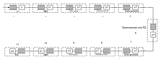Преобразуем каждое звено сети в М/М/1. Результат получили на рис. 6.