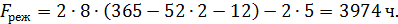 - режимный фонд времени работы оборудования, ч.;