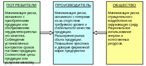Разработанные стандарты ИСО вобрали в себя все наиболее рациональное из того, что было накоплено в этой области знаний и практической деятельности. Стандарты не только устанавливают унифицированные подходы к системе качества и методам ее оценки, но служат ценным источником мирового опыта в области обеспечения качества. Главное же в стандартах ИСО – это то, что они выступают средством регулирования интересов производителя продукции и услуг, их потребителей и общества (Рисунок 3 .16).