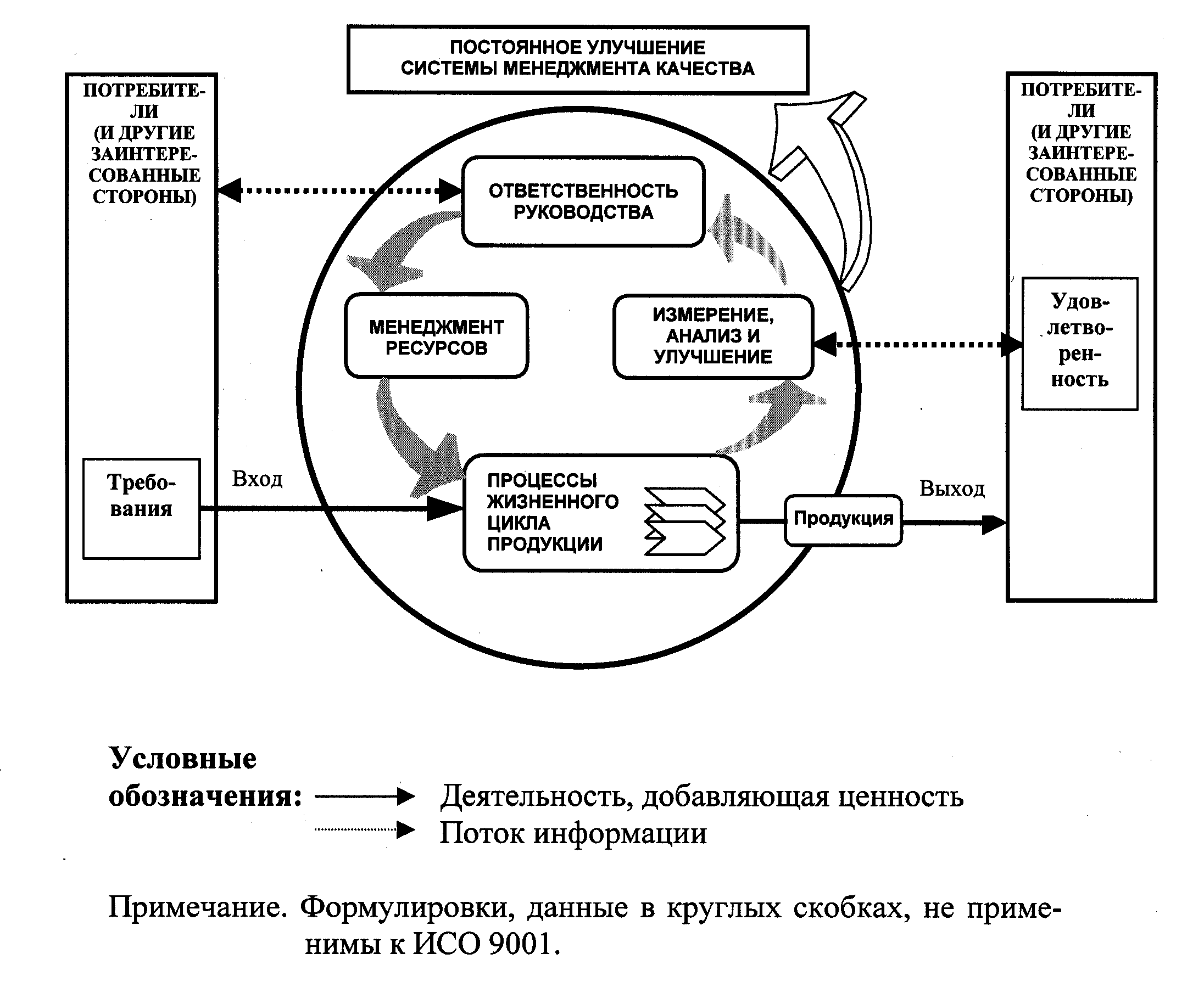 В стандарте ИСО 9000-2000 определены основные положения, касающиеся систем менеджмента качества. Системы менеджмента качества могут содействовать организациям в повышении удовлетворенности потребителей. Потребителям необходима продукция, характеристики которой удовлетворяли бы их потребности и ожидания. Эти потребности и ожидания, как правило, отражаются в технических условиях на продукцию и обычно считаются требованиями потребителей. Требования могут быть установлены потребителем в контракте или определены самой организацией. В любом случае приемлемость продукции в конечном счете устанавливает потребитель. Поскольку потребности и ожидания потребителей меняются, организации должны постоянно совершенствовать свою продукцию и процессы.