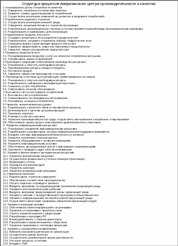 Вызывает определенный интерес результаты исследований Американского центра производительности и качества (American Productivity&Quality Center), позволившие предложить типовую структуру классификации процессов (Рисунок 4 .21) [ 17 ]