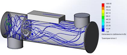 На первом этапе осуществлен анализ течения потока жидкости в рабочей емкости установки. Полученное значение давления было в использовано в дальнейших расчетах на прочность.