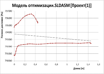 По результатам анализа видно, что давление, действующее на поверхность фланца крышке, немного уменьшилось и составило примерно 794000 (Па) вместо 800000 (Па) в предыдущем расчете потока жидкости.