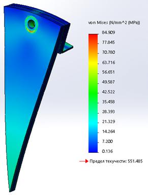 Как видно из диаграммы максимальное напряжение не превышает предел текучести материала фланца. Это означает, что исследуемый объект выдержит давление, которое возникает вследствие прохождения потока жидкости в рабочей емкости.