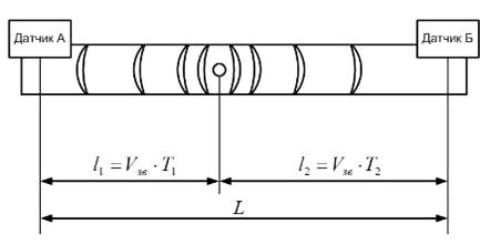 расстояние от места возникновения волны до датчика, на котором фиксируется