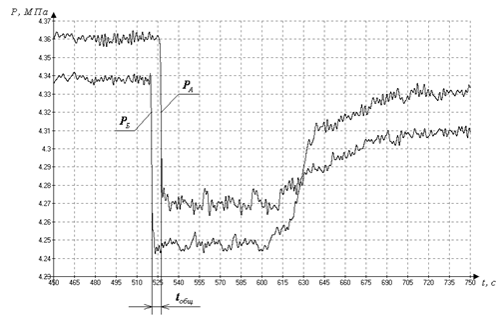 - падение давления, зафиксированное