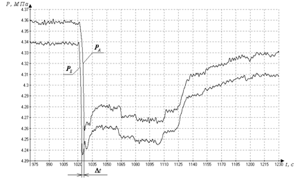 участка;- длина контролируемого участка МН (между двумя датчиками давления);