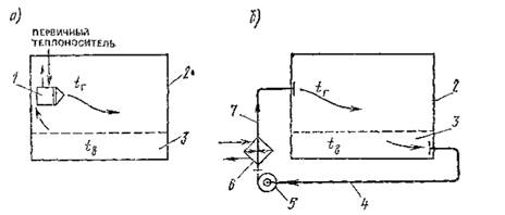 (а) и центральной (б) систем воздушного отопления Отопительный агрегат;