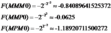 Так будет выглядеть функция, если “читать” число слева направо. Для примера рассмотрим, чему будет равняться число “MMM0” и, следующие за ним по-порядку “MMP0” и “MPM0” при основании 2: