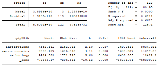 душу населения на 64% объясняются переменными «институты», «инфраструктура» и