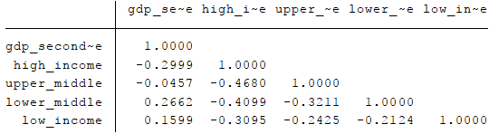 Тем не менее, произведенные расчеты не позволяют проанализировать, какие показатели оказывают наибольшее влияние на экономический рост стран с различным уровнем доходов. Для этой цели проведем аналогичное исследование, разделив при этом страны на три группы: страны с высоким, средним и низким уровнем доходов (по методологии The World Bank, рассчитанным на основе показателя ВНД на душу населения).