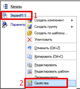Аз тарафи чап аз равзанаи “Навигатор проекта” ба объекти “Экран#1:1” тарафи чапи мушро пахш намуда тугмаи “Свойста”-ро интихоби менамоем.
