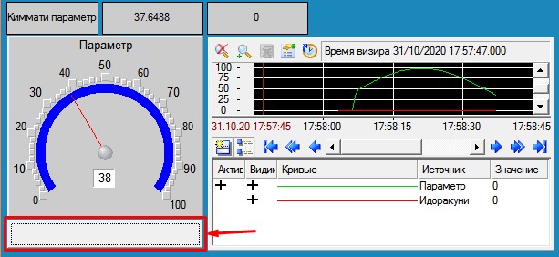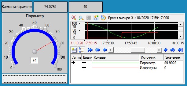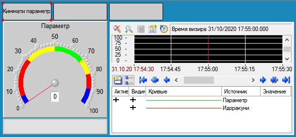 Натиҷаи пахши тугма ин оғози лоиҳаи мо дар амалия мебошад, графикро мебинем, ки дараҷаи қиммати аргументи “Параметр”-и мо баланду паст мешавад, ба таври гирифти қиммати тасодуфи. Ба тугмае, ки дар зери объекти тирчадори “Параметр” аст, пахш менамоем.