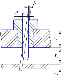 где S -максимальный диаметр зазора между кондукторной втулкой и инструментом;- длина кондукторной втулки,мм;=6 мм- расстояние от поверхности заготовки до кондукторной втулки, мм;=9- длина кондукторной втулки, мм=20 мм