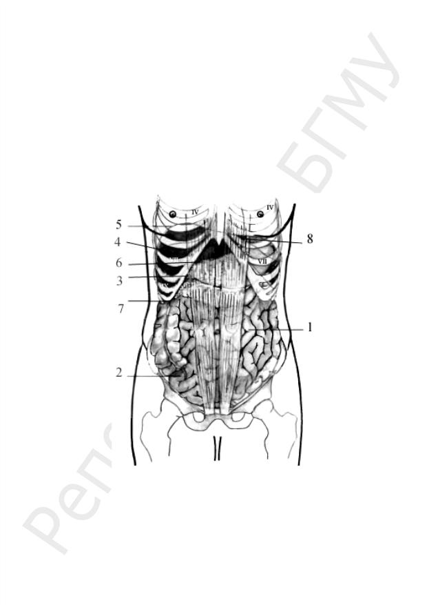 Рис. 14. Области живота на передней брюшной стенке: