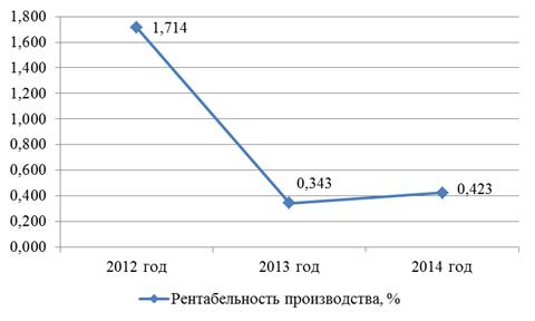 наблюдается снижение показателя с 1,714% в 2012 году до 0,423% в 2014 году, в