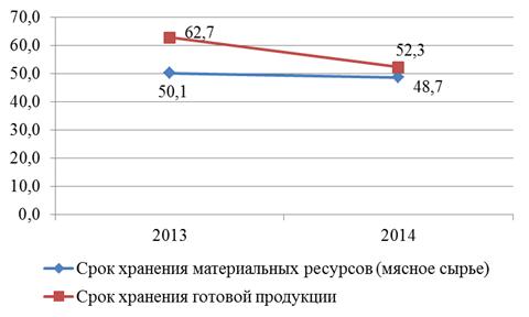 Рисунок 2.6 - Изменение срока хранения запасов на складе мясокомбината