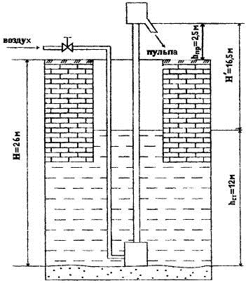 Рассмотрим вариант способа гидравлического подъема руды при помощи эрлифта.