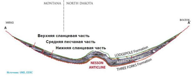 Рис.1. Схематичный разрез формации Баккен