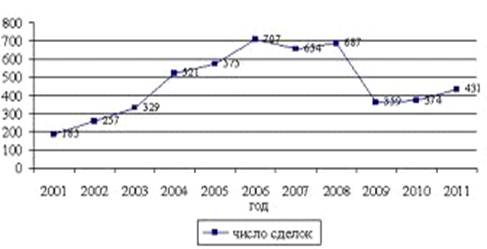 Динамика заключённых сделок M&A по миру