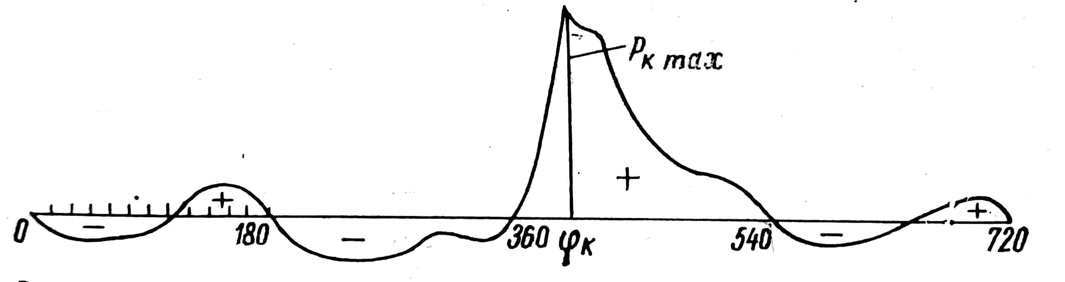 Диаграмма касательных усилий для одного цилиндра четырехтактного двигателя представлена на рис. 7.