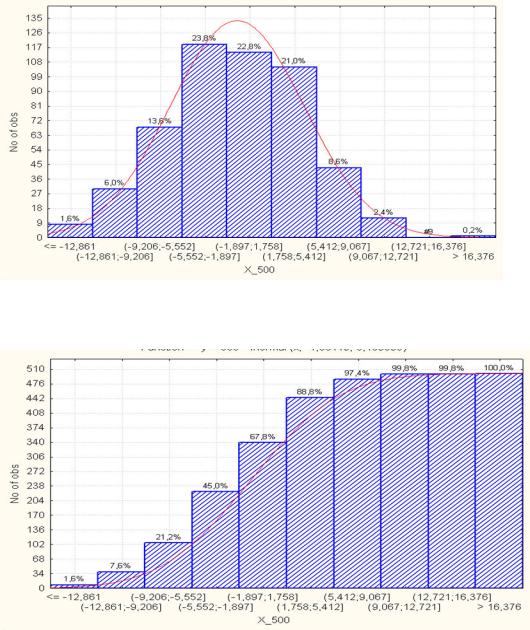 6. Гистограмма по значениям X_500, N2=500 r =1+3,2*lg500=10