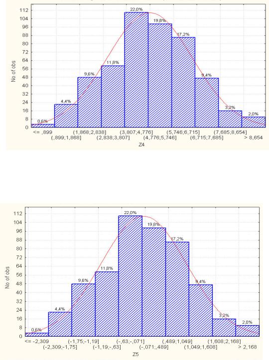 Гистограмма для Z5=(ΣYi-3)/√(1/2), i=1, 2,…,6