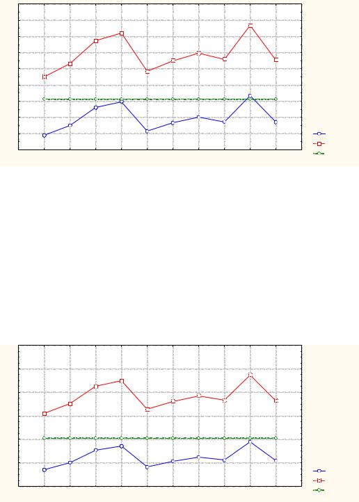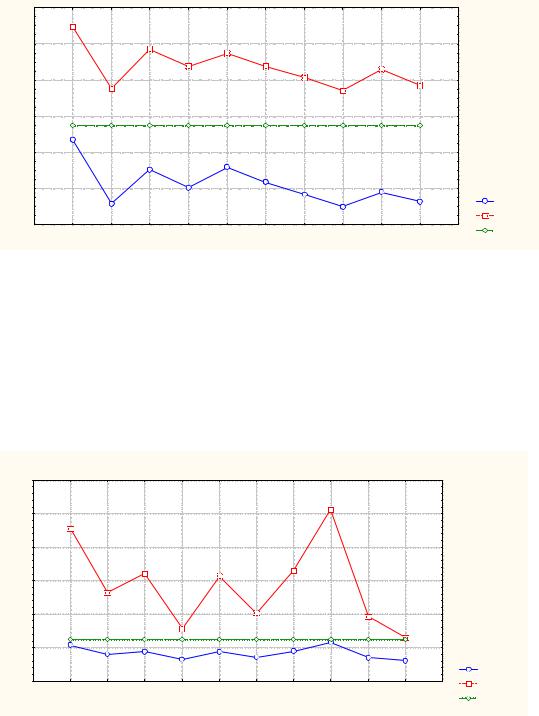При объеме выборки N=10 доверительный интервал содержит истинное значение D[X], то есть K=0. При объеме выборки N=500 доверительный интервал не содержит истинное значение D[X] в одном из 10 случаев, то есть K=1. Границы доверительного интервала – случайные величины, которые зависят от выборки, поэтому доверительный интервал может не содержать истинного значения в каком-либо случае.