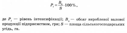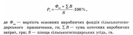 Це прямий і основний показник, що відображає рівень інтенсифікації розвитку всіх галузей і підприємства загалом. Він засвідчує рівень концентрації живої й уречевленої праці в розрахунку на одиницю площі сільськогосподарських угідь і характеризує ступінь інтенсивності використання землі.