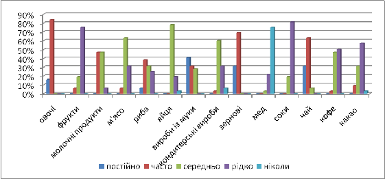 що ми розглянули стосується сфери харчування. Результати представлені в таблиці