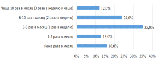 13,4% и 13% аудитории соответственно. Меньше всего респондентов регулярно