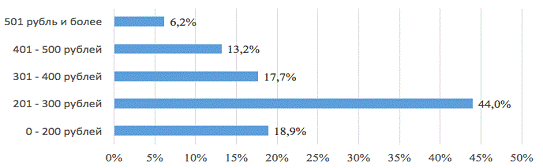 17,7% респондентов он составляет примерно350 рублей.13,2% опрошенных обладает