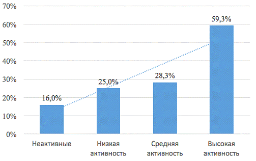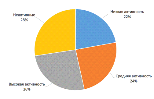опрошенных оказалось 22%. Средняя активность подразумевает участие в 2 любых