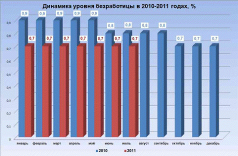 Рисунок 3.1 - Динамика уровня безработицы в 2010-2011 годах