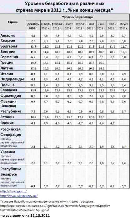 Рисунок 3.2 - Уровень безработицы в различных странах мира в 2011 году