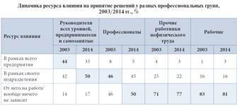 существенное снижение объема влияния на рабочем месте, причем как в рамках