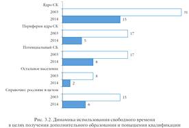 Согласно данным исследования, выявляется, что за период с 2003 по 2014 гг. в СК заметно (с 36 до 15%) сократилась доля тех, кто смог повысить уровень своего образования или квалификации, а также (с 31 до 10%) - получить повышение на работе или найти новую, более подходящую работу.