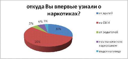 наркотиках?», 30% (9 человек) ответили от друзей, , 56% (15 человек) из средств
