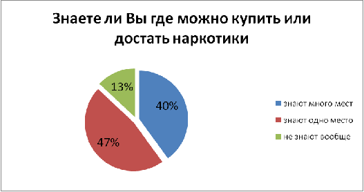 достать наркотики?» получили следующее: знают много таких мест - 40% (12