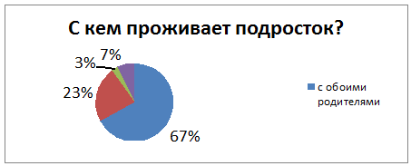 эмпирическом исследовании 67% ( 20 человек) проживают с обоими родителями, 23.%