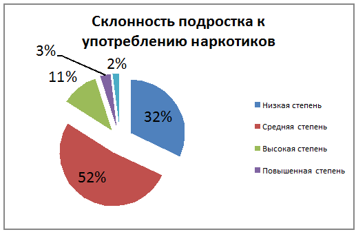 большинство подростков средним степенью склонности к употреблению наркотиков.
